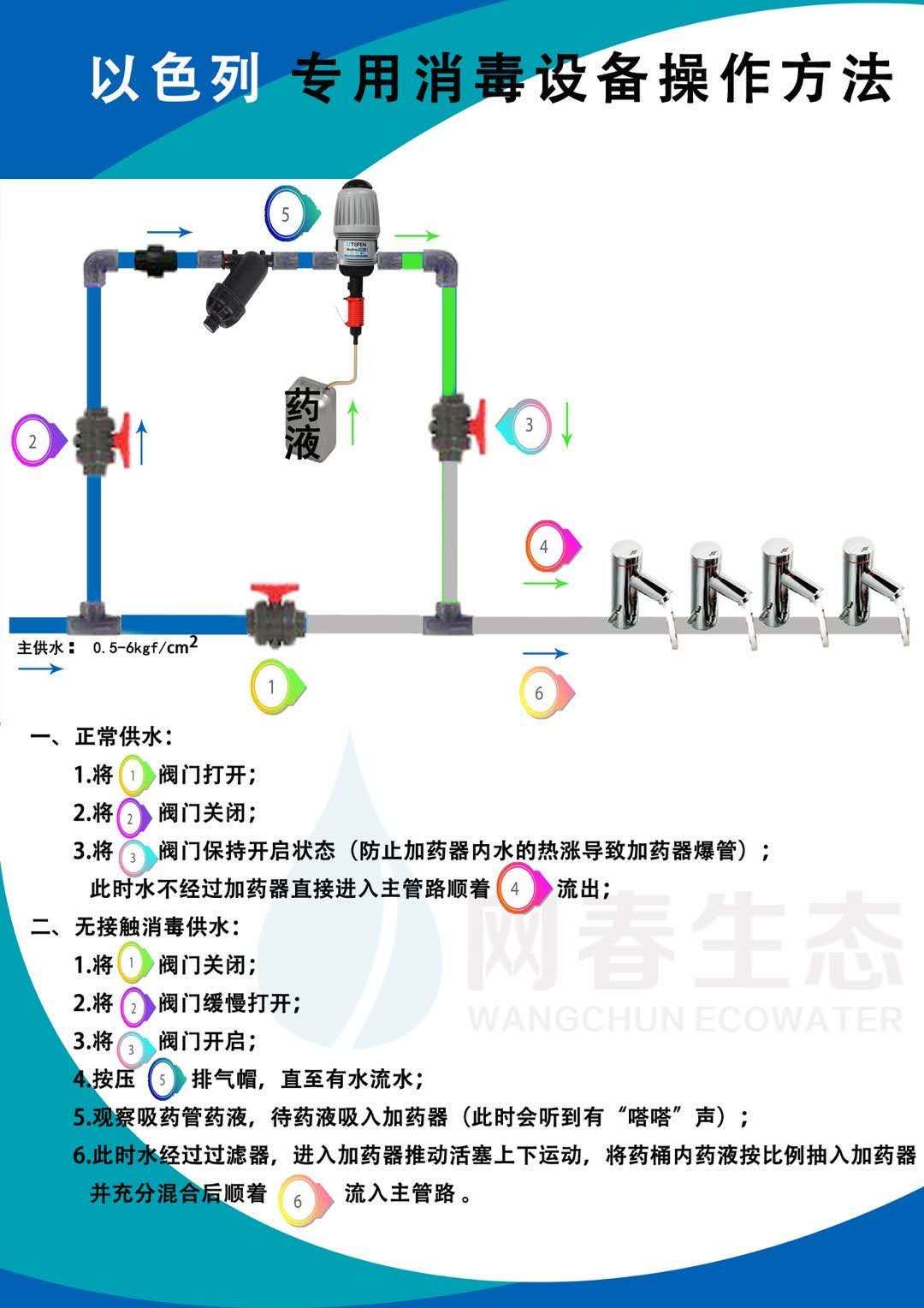 消毒剂一定要按照正确比例去调配,合理使用。经常看到类似“把84消毒液与常温清水按1:100的比例稀释器后加入清水箱”;“浓缩除菌液,稀释比例:1:50”等相关说明。在更高频率的清洁和消毒作业下,人工兑水,人工稀释暴露出的安全问题更多。使用化学品自动稀释设备不失为一种无接触式、更安全、更高效的稀释之道。